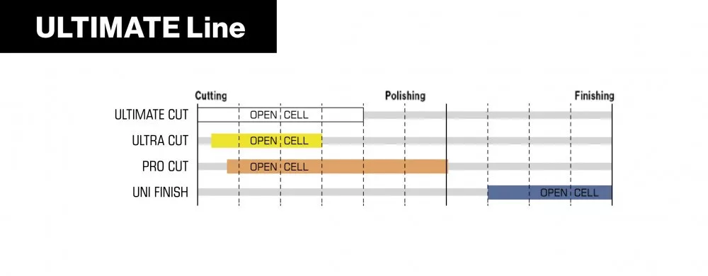 Nagyon agresszív polírozó korong, amely a mély karcolások eltávolítására szolgál a fényezésen. A terméket a 3. legagresszívebb vágóerő osztályba sorolták be az ULTIMATE termékcsaládban.